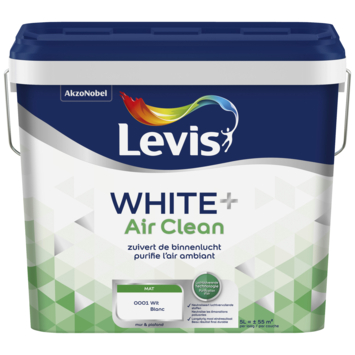 Levis White+ air clean is een kwalitatieve muurverf die ook binnenlucht zuivert. Deze witte muurverf neutraliseert tot 70% van de luchtvervuilende stofjes die opkomen uit tapijten en bouwmaterialen.
