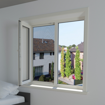 Met het Livn inzetvliegenraam Basic houd je vliegen en andere insecten moeiteloos buiten. Dit handige raamwerk bestaat uit aluminium profielen en stevig, zwart glasfiber gaas dat je eenvoudig op maat kunt maken. Zonder boren of schroeven monteer je het vliegenraam direct in het kozijn, perfect voor kunststof kozijnen. Zowel de hoogte als de breedte van het raamwerk zijn gemakkelijk in te korten, zodat het precies aansluit op je raam. De witte aluminium profielen (RAL9010) geven een nette, strakke uitstraling die past bij elke inrichting. Speciaal ontworpen voor naar binnen draaiende ramen en draaikiepramen, biedt dit inzetvliegenraam een uitstekende oplossing voor raamopeningen tot 80 x 120 cm.