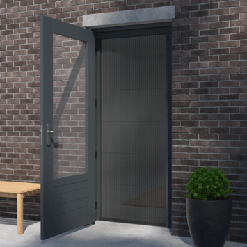 De Livn plissé vliegendeur Excellent is een stijlvolle oplossing tegen insecten, met een lage ondergeleiding van 5 mm voor een drempelloze doorloop. De hordeur is eenvoudig te installeren dankzij een volledig voorgemonteerde cassette en past bij diverse deuropeningen, zoals schuifpuien en openslaande deuren. Het strakke antraciete (RAL7016) ontwerp en het zwarte gaas met windbestendige onderketting zorgen voor een discreet en stevig resultaat. De deur is flexibel te monteren, ook buiten het kozijn met een opbouwkader, en is geschikt voor openingen tot 96 x 245 cm.