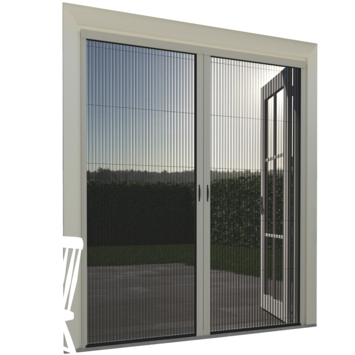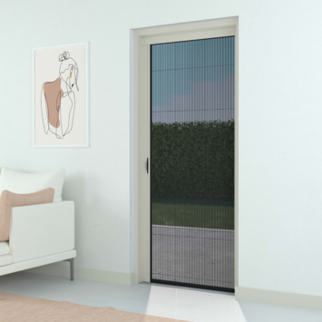 De Livn plissé vliegendeur Excellent is een stijlvolle oplossing tegen insecten, met een lage ondergeleiding van 5 mm voor een drempelloze doorloop. De hordeur is eenvoudig te installeren dankzij een volledig voorgemonteerde cassette en past bij diverse deuropeningen, zoals schuifpuien en openslaande deuren. Het strakke witte ontwerp (RAL9010) en het zwarte gaas met windbestendige onderketting zorgen voor een discreet en stevig resultaat. De deur is flexibel te monteren, ook buiten het kozijn met een opbouwkader, en is geschikt voor openingen tot 96 x 200 cm.