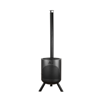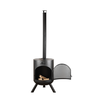 Deze veilige terrashaard heeft een nette deur, waardoor je gemakkelijk het hout in de haard kunt leggen. De deur beschermt je van de vlammen en rook, maar doordat je er doorheen kunt kijken geniet je wel van de gezellige sfeer. De metalen haard heeft een strak ontwerp en een industrieel design. De haard is uitgebreid getest op brandveiligheid en gebruiksgemak. Hij staat op drie stevige poten, daarmee staat hij stabiel op de grond. Bovendien beschikt de haard over een luchtpijp met een dakje tegen de regen.