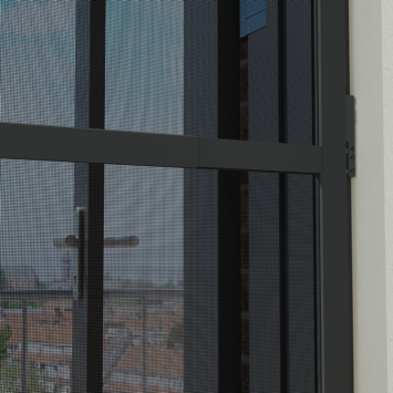 Met de stevige Livn vliegendeur Excellent houd je insecten buiten zonder moeite. Deze deur is eenvoudig op maat te maken dankzij de uitschuifbare aluminium profielen, geheel zonder zagen. De zelfsluitende scharnieren zorgen ervoor dat de deur automatisch in de magneetsluiting valt zodra je erdoorheen loopt. Met de telescopische profielen stel je de afmetingen van de deur gemakkelijk in, zonder gereedschap. Het frame is voorzien van borstels die voorkomen dat de deur hard dichtklapt. De aluminium constructie is uitgevoerd in antraciet (RAL7016) en heeft zwart glasfibergaas voor een strakke uitstraling. De Livn vliegendeur Excellent is geschikt voor montage op het kozijn, zowel binnen als buiten. Bij een naar buiten draaiende deur monteer je de hor aan de binnenzijde, en bij een naar binnen draaiende deur plaats je hem buiten op het kozijn. De montage kan zowel links als rechts, waarbij de scharnieren aan de kant van de deur scharnieren. De Livn vliegendeur Excellent is geschikt voor deuropeningen tot maximaal 100 x 230 cm.