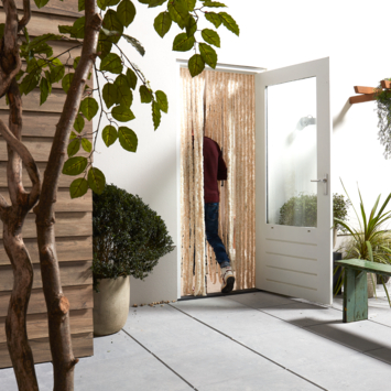 Prima deurgordijn, maar ik vond de strengen te dik. Je verliest de transparantie naar de tuin. Heb het gordijn dus teruggestuurd en gekozen voor een draadjesgordijn.