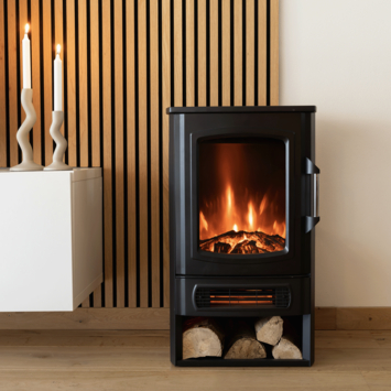Met de Livn vrijstaande kachel Kent geniet je van een realistisch vlameffect zonder rook en asresten. Onderaan de kachel bevindt zich een handige opbergruimte voor de houtblokken ter decoratie. De kachel beschikt over twee instelbare verwarmingsvermogens: 1000 W en 2000 W. Deze bedien je eenvoudig met de knoppen aan de achterkant. Wil je alleen genieten van het sfeervolle vlambeeld? Ook dit is mogelijk. Stel gemakkelijk de verwarmingsfunctie en het vlambeeld apart in. Zo geniet je wel van de openhaard-look zonder te verwarmen.