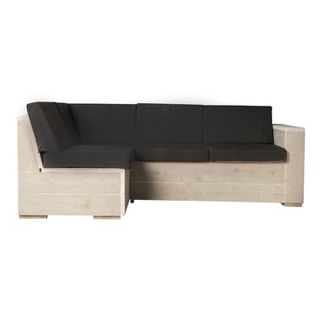 De hoekbank Engelburg in zand is een trendy loungebank, volledig gemaakt van steigerhout. Gezien vanaf de voorkant, heeft de bank in de linkerhoek een extra zitplaats. De hoekbank heeft een hoogte van 73 cm, een breedte van 216 cm en een diepte van 145 cm. Je kunt de loungebank compleet maken met de comfortabele zit- en rugkussens (los verkrijgbaar).