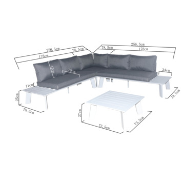 De Loungeset Amily is een moderne loungeset die elke tuinfeest naar een hoger niveau tilt. Dit prachtige en moderne tuinmeubel is gemaakt uit gemakkelijk te onderhouden aluminium en bestaat uit grote hoekzetel voor 5 personen en een tafel in het wit. En de kussens? Die krijg je er ineens bij! Wedden dat je vrienden in de rij zullen staan? Zet de barbecue alvast klaar, ontkurk een fles of twee en geniet van een gezellige babbel in de buitenlucht. Tip: ook beschikbaar in antracietkleur.