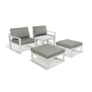 - Modulaire set: 2 ligbedden of 2 stoelen en 2 poefs