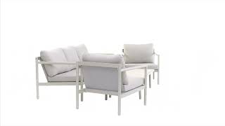 - Set bestaat uit een 3-zitsbank, 2 zetels, bijzettafel, zit- en rugkussens