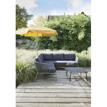 De Loungeset Kopenhagen in army green combineert Scandinavisch design met topkwaliteit. Deze stalen tuinset, inclusief hoekbank, zit- en rugkussens (exclusief sierkussens), is een lust voor het oog en een genot om in te zitten/liggen/zonnen. In alle comfort genieten van het mooie weer, een gezellige babbel of een spetterend tuinfeest? De Loungeset Kopenhagen mag niet ontbreken.