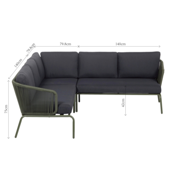 - Hoekset, afm. (lxbxh): 220x220x75 cm
