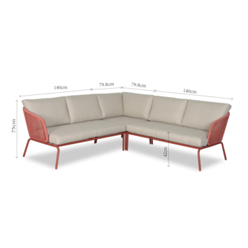 Je krijgt bij deze set zit- en rugkussens, zodat je meteen comfortabel kan ontspannen. Je hoeft dus niets extra te voorzien om gezellig te kunnen loungen. Met zijn afmetingen van 202 x 202 x 75 cm past deze hoekbank mooi op een terras of in een tuin waar je een vaste zithoek wil maken.