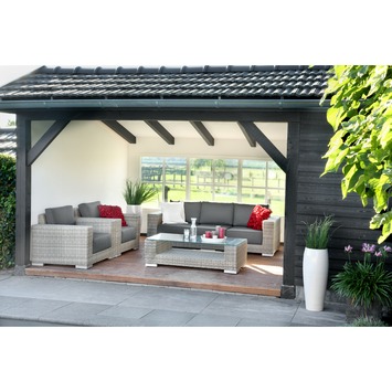 Heerlijk genieten in je tuin met de loungeset Milano. Deze loungeset is gemaakt van bruine gevlochten halfronde wicker Dankzij deze weerbestendige kunststof kan je de meubels zonder problemen buiten laten staan. Deze stijlvolle set is voorzien van extra dikke zitkussens en geven je optimaal zitcomfort. De zitbank vormt samen met de 2 stoelen en tafel een complete set. De tafel met blad in veiligheidsglas en lectuurbak is tegelijk handig en stijlvol. Kortom, met de loungeset Milano creëer je een ontspannen buitenzitplaats.