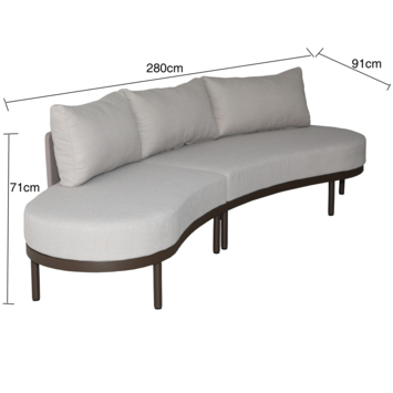- Set bestaat uit een loungebank, zit- en rugkussens