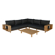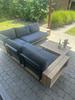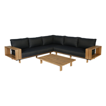 - Hoekloungebank, bijzettafel, zit- en rugkussens