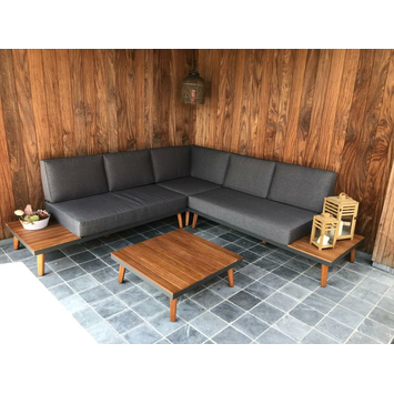 - Hoekzetel met 2 geïntegreerde bijzettafels en salontafel