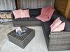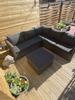 De loungeset Torino is een landelijke loungeset voor 5 personen. De set bestaat uit 1 grote hoekvormige zitbank en 1 bijzettafeltje / poef met een authentieke look & feel, dankzij het gebruik van wicker in de kleur antraciet. De comfortabele zetel beschikt over arm- en rugsteunen, evenals afneembare kussens in de kleur grijs voor extra comfort. Deze tuinmeubelset is ideaal voor wie graag familie en vrienden ontvangt in een losse, uitgelaten sfeer. Geen volk over de vloer? Dan kan je zelf languit van je gloednieuwe loungeset genieten! Goed om te weten: wicker is een weerbestendige gevlochten kunststof die tegen een stootje kan.