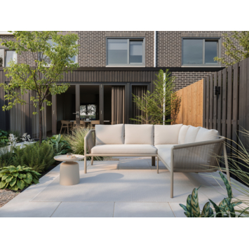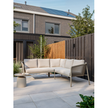 De Lugo loungeset is een hoekopstelling voor buiten die je gebruikt als vaste zithoek voor vijf personen. Met twee zijden van 222 cm heb je veel plaats zonder losse stukken te moeten combineren. Je zet de set op je terras, onder een veranda of in de tuin en je indeling staat meteen vast.