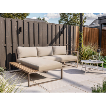 De Tulum loungeset is een hoekbank voor buiten met plaats voor drie personen en is meteen klaar voor dagelijks gebruik.