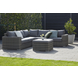 De loungeset Valence is een moderne loungeset voor 5 personen. De set bestaat uit 1 grote hoekvormige zitbank en 1 bijzettafeltje / poef met een authentieke look & feel, dankzij het gebruik van wicker in de kleur grijs. De comfortabele zetel beschikt over arm- en rugsteunen, evenals extra dikke kussens in de kleur grijs voor extra comfort. Deze tuinmeubelset is ideaal voor wie graag familie en vrienden ontvangt in een losse, uitgelaten sfeer. Geen volk over de vloer? Dan kan je zelf languit van je gloednieuwe loungeset genieten! Goed om te weten: wicker is een weerbestendige gevlochten kunststof die tegen een stootje kan. Is je loungeset toch vuil geworden? Dan kan je hem gewoon reinigen met water en een milde zeep.
