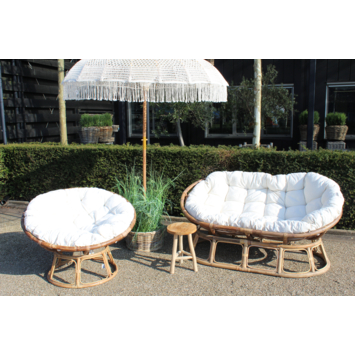 De Mamasan loungestoel in bruin rotan is gemaakt om je helemaal in onder te dompelen in comfort. Met zijn royale afmetingen van 110 cm breed en 180 cm diep én een zithoogte van 60 cm, is er volop ruimte om languit te zitten, te lezen of gewoon even te dagdromen. Het stevige rotanframe heeft een warme, natuurlijke uitstraling die moeiteloos opgaat in verschillende stijlen, van modern tot landelijk. Het crèmekleurige zitkussen voelt zacht en uitnodigend aan, zodat je direct kunt neerploffen en genieten. Plaats de stoel in je tuinhuis voor een knus leeshoekje, of zet hem onder een overkapping voor lange zomeravonden met vrienden. Je ontvangt de Mamasan volledig gemonteerd, zodat hij direct klaarstaat voor gebruik. We adviseren om hem alleen binnen of beschut buiten te plaatsen, zodat je er extra lang plezier van hebt.