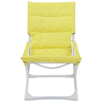 Zalig achterover leunen doe je vanuit de vouwstoel Rhodos. Het frame van deze uitklapbare stoel bestaat uit stevig staal, de bekleding uit geel polyester. Verkrijgbaar in verschillende kleuren.