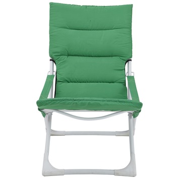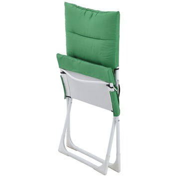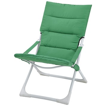 Zalig achterover leunen doe je vanuit de vouwstoel Rhodos. Het frame van deze uitklapbare stoel bestaat uit stevig staal, de bekleding uit groen polyester. Verkrijgbaar in verschillende kleuren.