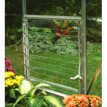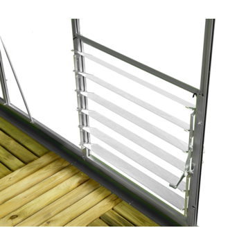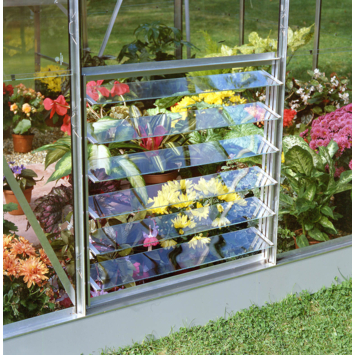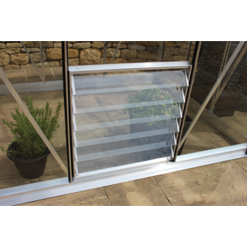Dit Louvreraam 6L is geschikt voor de tuinserres: Popular, Royal, Magnum, Birdlip, Burford en Blockley. Een louvreraam is een lamellenraam, een aanvulling op de dakra(a)m(en) die al aanwezig zijn in de kas. Een louvreraam is voorzien van verschillende lamellen van glas die in horizontale stand geopend kunnen worden, of in verticale stand overlappen, en daarmee het raam sluiten. Voor een louvreraam is een automatische louvreraamopener optioneel verkrijgbaar. Dit louvreraam is voorzien van veiligheidsglas 3mm (610 x 610 mm) in een blank frame en heeft 6 lamellen. Meestal is er voor het monteren van een louvreraam een extra 'pasruit' nodig!