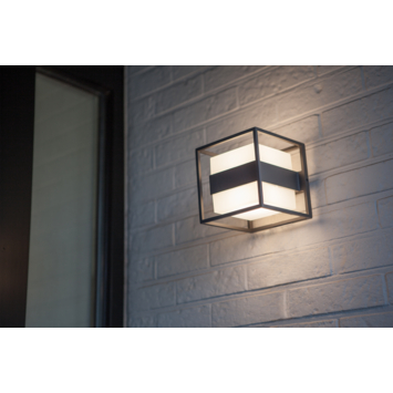Dit donkergrijze kubusvormige buitenwandelicht met geïntegreerde LED is een echte blikvanger vanwege het moderne ontwerp. Het warme witte licht schijnt in alle richtingen die je buitenomgeving een bijzonder mooie uitstraling geven.