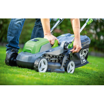 De LUX 20V grasmaaier maakt gebruik van twee 4Ah accu's in serie, hierdoor heb je de kracht van een 40V accu. Het opladen van de twee accu's met de dual-lader kost ongeveer twee uren. De maaier heeft een maaibreedte van 33 cm en wordt aangedreven door een koolborstelloze motor. De maaihoogte heeft vijf verschillende instelbare hoogtes tussen de 20 mm en 60 mm zodat je de optimale hoogte in kan stellen voor jouw gazon. Ook vangt de grasmaaier het gemalen gras op in een makkelijk te legen bak, deze heeft een inhoud van 30L.