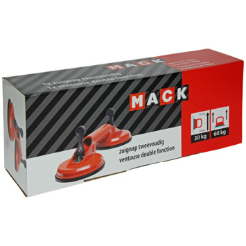 Deze dubbele zuignap van MACK geeft een stevige houvast op tegels, spiegels, ramen,etc... De ‘quick release’ hendels zorgen ervoor dat de zuignap muurvast zit, maar dat je deze ook weer snel kunt losmaken, zonder sporen na te laten. Ook grote, zware, gladde voorwerpen tot 100kg kan je er probleemloos mee optillen. De zuignappen hebben een diameter van 120mm. De zuignap is gemaakt uit licht kunststof.