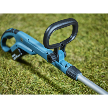 De Makita accu grastrimmer DUR181Z is een lichtgewicht trimmer op accu met solide aluminium schacht. De grastrimmer is eenvoudig in hoogte verstelbaar en dus makkelijk aan te passen naar jouw wensen. De draadkop is eenvoudig te vervangen en kantelbaar voor het snijden van graskanten. De maaibreedte van de machine is 26 cm. Wanneer je de grastrimmer op moet laden, geeft de 18V accu een waarschuwing. De grastrimmer is beveiligd tegen diepontlading. Je heeft lage verbruikskosten door minder onderhoud en het ontbreken van brandstof en olie. De trimmer wordt geleverd zonder accu's of lader.