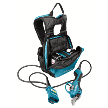 De Makita accu snoeischaar DUP361ZN knipt moeiteloos door takken heen met een dikte van maximaal 33 mm. Dankzij het ergonomische draagstel voor de accu's is de machine comfortabel om te gebruiken.