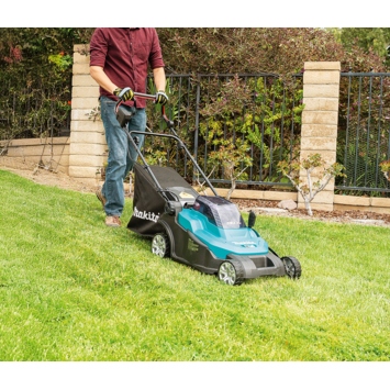 Als je vaak moet maaien, dan liever met de MAKITA DLM432, een sterke accu grasmaaier. Geen gestoei met de kabel, maar vrijheid van bewegen. Met zijn 43 cm brede maaidek is hij geschikt voor gazons tot 575 m2. Hij wordt gevoed door 2 accu's van 18 V. De maaier is stil en milieuvriendelijk door het gebruik van Lithium-ion accu's. Hij is onderhoudsvriendelijk. Achter de grasmaaier is het prettig lopen door de ergonomische duwbeugel. Na afloop klap je de beugels van de maaier met de handige snelsluiting eenvoudig in. De maaihoogte ligt tussen de 20 - 75 mm en is centraal in 13 hoogtes te verstellen. Klaar met maaien? Gebruik je accu’s voor één van die andere 250 LXT Makita accumachines. Bij gebruik van twee 5,0 Ah accu's heeft deze machine een gemiddelde standtijd van 45 minuten.
