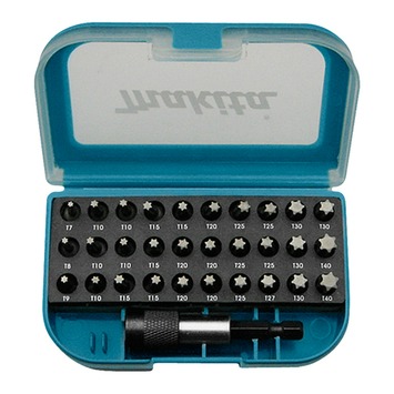 De Makita 31-delige bitset P-73352 is voorzien van een handige riemclip. De bitset heeft diverse bits in de maten Phillips, Pozidriv, Torx en Inbus. De Makita bitset wordt geleverd met een universele magnetische bithouder, hierdoor kun je gemakkelijk van bit wisselen.