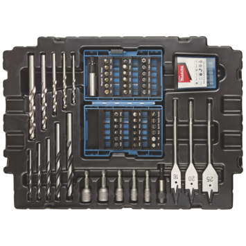 Met de Makita accuschroefboormachine DF347DWJX4 14,4V met 66-delige accessoiresset kun je verbindingen maken in verschillende materialen, zoals hout, metaal, aluminium en kunststof. Deze machine is ideaal voor de regelmatige, niet-dagelijkse doe-het-zelver. Hij weegt slechts 1,4 kg en ligt daardoor prettig in de hand. Dankzij de snelspanboorkop tot 10mm met asblokkering kun je gemakkelijk met de hand bits en boren verwisselen. De DF347DWJX4 heeft twee mechanische versnellingen: hoog en laag. Je kan ermee boren in hout tot 25mm en in metaal tot 10mm. De variabele toerenregeling in de schakelaar zorgt ervoor dat je rustig kunt beginnen met schroeven of boren. Het voorkomt ook het verspringen van de schroeven. De accuboormachine wordt geleverd met 1,3Ah accu's die je in 60 minuten kunt opladen. Je kan de accuschroefboormachine, accu's en de 66-delige accessoires set opbergen in twee professionele M-boxen die je kan koppelen aan andere Makita opbergboxen. De Makita accuschroefboormachine DF347DWJX4 14,4V is een complete set met voldoende boren en bits en je kan hem ook nog eens netjes opbergen.