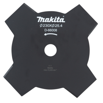 De D-66008 van Makita is een stalen slagmes met 4 tanden voor bosmaaiers. Effectief bosmaaierblad voor het maaien van grote oppervlakken, zowel in sterk, droog gras als in wildgroei.