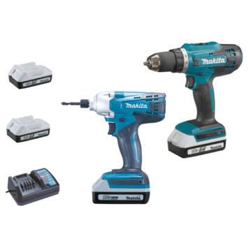 Tweedelige accuset met boor- schroefmachine en slagschroevendraaier, ideaal voor regelmatig gebruik in en rondom het huis. Deze set werkt op het G-serie accuplatform en wordt geleverd met twee 18V-batterijen en lader in een handige plastic koffer.