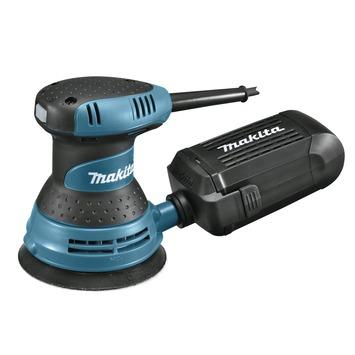 Deze Makita Excenter schuurmachine B05030K is een praktisch handpalmmodel. De schuurmachine heeft een 125mm brede schuurschijf en weegt slechts 1,3kg. Daarmee is het de lichtste excenter schuurmachine op de markt. Hij heeft een ergonomische handgreep waardoor hij prettig in de hand ligt en je minder last krijg van vermoeidheid en verkramping in de handen. Ook zorgt dit ervoor dat je gecontroleerd kunt werken. De B05030K is uitgerust met dual action, wat betekent dat hij tegelijkertijd roteert en oscilleert. Hij maakt 24.000 schuurbewegingen per minuut en dat levert goede schuurresultaten op. Dankzij de stofafzuiging komt het vrijgekomen stof direct in de stofbox in plaats van in de machine. Gezond voor jezelf als klusser en daardoor heeft de machine ook een langere levensduur. De Makita B05030K heeft een rem zodat de schuurzool direct bij het uitschakelen van de motor tot stilstand komt. Met deze handpalmschuurmachine haal je een lichte en robuuste machine in huis.