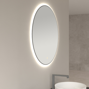 Met deze ronde spiegel maak je eenvoudig een warme en sfeervolle badkamer. De indirecte LED-verlichting rondom het slanke zwarte frame geeft een zacht licht. Je bedient het licht eenvoudig via de touch sensor aan de voorkant. Daarmee pas je niet alleen de sterkte aan, maar ook de kleurtemperatuur van 3000 tot 6500 kelvin. Zo stel je het licht precies in zoals je wilt, bijvoorbeeld warm en gezellig voor ’s avonds of helder voor je ochtendroutine. De spiegel is gemaakt van kopervrij glas van 4 mm, waardoor hij goed bestand is tegen vocht. Daardoor is hij perfect voor de badkamer. De LED schakelt automatisch uit na een uur, wat energie bespaart. Met de spatwaterdichte IP44-certificering en het meegeleverde bevestigingsmateriaal hang je de spiegel snel en veilig aan de muur.