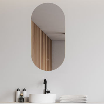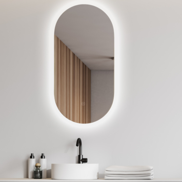 Deze ovale Mirala spiegel zorgt voor het juiste licht in je badkamer. De led-verlichting is dimbaar en je kunt de kleurtemperatuur traploos instellen, van warm wit (3000K) tot koel wit (6500K). Zo creëer je eenvoudig de sfeer die bij je past. De touch-knop in het glas maakt het bedienen eenvoudig en snel. Na een uur schakelt de verlichting automatisch uit, wat energie bespaart. Tevens is de spiegel voorzien van een verwarmingsmatje dat condens voorkomt, zodat je spiegel altijd helder blijft. De spatwaterdichte ip44-classificatie zorgt ervoor dat de spiegel ook in vochtige ruimtes goed functioneert. Met een afmeting van 50 x 100 cm en een slanke lijst krijgt jouw badkamer een moderne, strakke uitstraling.