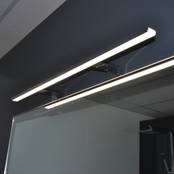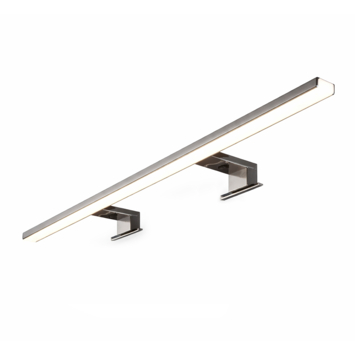 Met deze Syrin ledlamp van 800 mm breng je krachtig en helder licht in de badkamer. De geïntegreerde led van 13 watt biedt neutraal wit licht (4000 kelvin), wat aangenaam is voor dagelijks gebruik. De brede stralingshoek (41–80°) zorgt ervoor dat je spiegel goed en gelijkmatig verlicht wordt. De lamp is geschikt voor montage op spiegels of kasten met een rand van minimaal 15 mm. Je klikt de steun eenvoudig vast, zonder schroeven of ingewikkelde aansluitingen. De transformator is al in de lamp verwerkt, dus je kunt hem direct aansluiten op het lichtnet (220V). De spatwaterdichte behuizing is bestand tegen vocht en past daardoor perfect in de badkamer. De opalen kap verspreidt het licht gelijkmatig en voorkomt hinderlijke schittering. De behuizing is gemaakt van kunststof met een chroomlook.