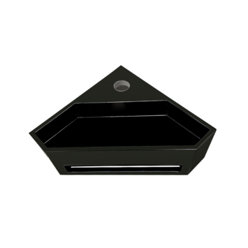 Deze mat zwarte Silara hoekoplossing geeft je toiletruimte een krachtige, moderne uitstraling. De driehoekige vorm van 35 x 35 cm past perfect in de hoek en bespaart ruimte. Ideaal voor een klein toilet of als je een strak interieur hebt. Onder de constructie zit een geïntegreerde handdoekhouder, zodat je handdoek altijd binnen handbereik hangt. Het oppervlak is gemaakt van solid surface: een sterk composiet dat goed bestand is tegen vocht, krassen en vlekken. Je hoeft geen waste te plaatsen. De afvoer loopt af, zodat water vanzelf wegloopt. Er is een kraangat in het midden. Je kiest zelf welke kraan en sifon je erbij combineert. Bevestiging is hangend, plugbouten zijn niet inbegrepen.