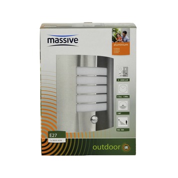 De Massive Outdoor collectie biedt buitenverlichting met een schitterende stijl en kwaliteit. Maak je keuze uit wandverlichting, sokkels of stralers. De Oslo wandlamp voor een spaarlamp van 60 watt en bewegingsmelder is gemaakt uit grijze inox, mat glas en heeft een lekker strak design.