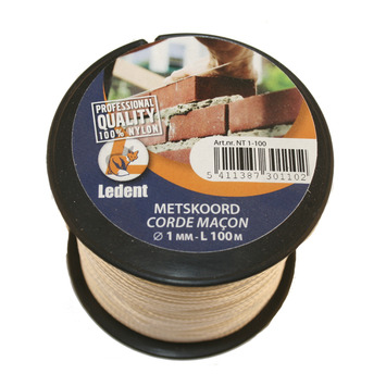 Dit UV-bestendige nylon touw is gevlochten. Hierdoor is het sterk, soepel en slijtvast. Tijdens het fabricageproces zijn er stoffen toegevoegd die de afbraak door UV tegen gaan. Zo worden de vezels minder snel aangetast zodat het touw niet snel breekt. Door deze eigenschappen wordt het dunne touw veel gebruikt als metselkoord. Het metselkoord 1mm wit 100 meter is makkelijk tussen verschillende metselprofielen te plaatsen. Hierdoor wordt het een onmisbaar hulpmiddel om horizontaal gezien recht te kunnen metselen. Kortom, het metselkoord is dun en resistent.