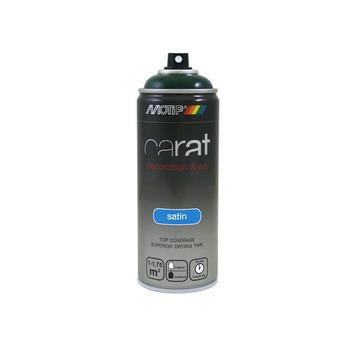 Motip Carat is een lak voor decoratieve doeleinden. Geschikt voor het lakken van behandelde en onbehandelde ondergronden zoals hout, metaal, aluminium, glas, steen en diverse soorten kunststof. De lak heeft een zeer hoge dekkracht en een duurzame kleur en glans. De lak is krasvast en stootvast, evenals bestand tegen chemicaliën en weersinvloeden. Verkrijgbaar in verschillende kleuren, waaronder zijdeglans Fir Green (400 ml).