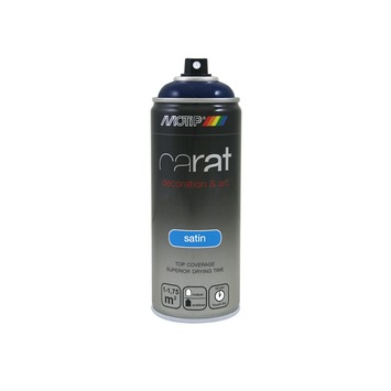 Motip Carat is een lak voor decoratieve doeleinden. Geschikt voor het lakken van behandelde en onbehandelde ondergronden zoals hout, metaal, aluminium, glas, steen en diverse soorten kunststof. De lak heeft een zeer hoge dekkracht en een duurzame kleur en glans. De lak is krasvast en stootvast, evenals bestand tegen chemicaliën en weersinvloeden. Verkrijgbaar in verschillende kleuren, waaronder zijdeglans Saphire Blue (400 ml).