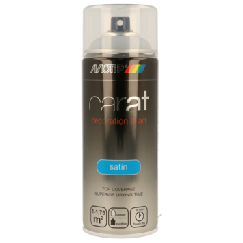 Motip Carat is een lak voor decoratieve doeleinden. Geschikt voor het lakken van behandelde en onbehandelde ondergronden zoals hout, metaal, aluminium, glas, steen en diverse soorten kunststof. De lak heeft een zeer hoge dekkracht en een duurzame kleur en glans. De lak is krasvast en stootvast, evenals bestand tegen chemicaliën en weersinvloeden. Verkrijgbaar in verschillende kleuren, waaronder zijdeglans Silver Grey (400 ml).