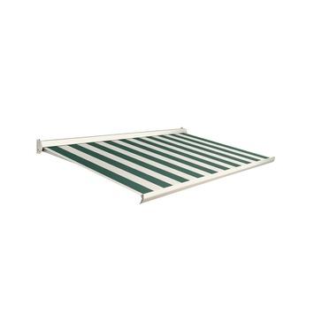 Het Factor 10 scherm is de uitgekiende startersversie onder de terrasschermen. Deze wordt uitgevoerd met het gestreept groen/crème kleurig doek (D517) uit de DomaSol® doekcollectie. Hiermee kiest u voor een hoogwaardig prijs/kwaliteit verhouding. Dit semi-cassettescherm wordt met slechts 2 steunen gemonteerd in de kleur crèmewit (RAL 9001). De maximale breedte is 350 cm bij een uitval van 300 cm. Bij schermen breder dan 450 cm wordt standaard een middensteuntje meegeleverd. Het scherm is te bedienen met een betrouwbare slingerstang of optioneel uit te rusten met een Somfy LT motor met schakelaar.