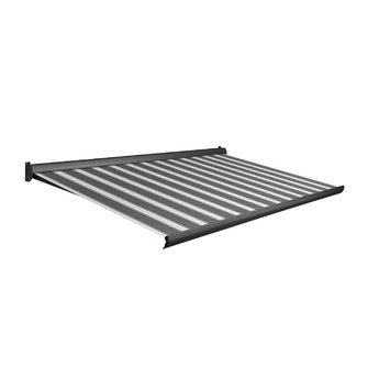 Het Factor 10 scherm is de uitgekiende startersversie onder de terrasschermen. Deze wordt uitgevoerd met het groen/creme wit doek (D408) uit de DomaSol® doekcollectie. Hiermee kiest u voor een hoogwaardig prijs/kwaliteit verhouding. Dit semi-cassettescherm wordt met slechts 2 steunen gemonteerd in de kleur antraciet (RAL 7016). De maximale breedte is 400 cm bij een uitval van 250 cm. Bij schermen breder dan 450 cm wordt standaard een middensteuntje meegeleverd. Het scherm is te bedienen met een betrouwbare slingerstang of optioneel uit te rusten met een Somfy LT motor met schakelaar.