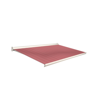 Het Factor 10 scherm is de uitgekiende startersversie onder de terrasschermen. Deze wordt uitgevoerd met het rood kleurig doek (D287) uit de DomaSol® doekcollectie. Hiermee kiest u voor een hoogwaardig prijs/kwaliteit verhouding. Dit semi-cassettescherm wordt met slechts 2 steunen gemonteerd in de kleur crèmewit (RAL 9001). De maximale breedte is 500 cm bijeen uitval van 300 cm. Bij schermen breder dan 450 cm wordt standaard een middensteuntje meegeleverd. Het scherm is te bedienen met een betrouwbare slingerstang of optioneel uit te rusten met een Somfy LT motor met schakelaar.